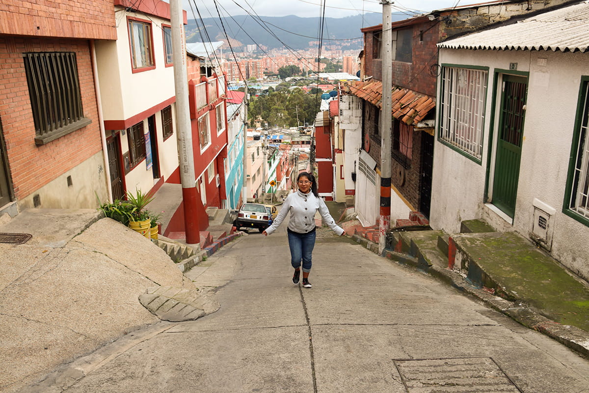 Sponsored youth Angela, who is also an Unbound scholarship student, walks through the streets of her hometown in Colombia. Angela’s dream is to become a writer.