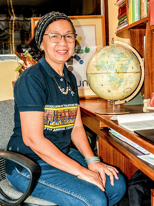 Photo 1: Malou Navio, pictured here in her office in Antipolo, Philippines, oversees all Unbound programs in the Philippines in support of more than 46,000 sponsored children and elders.