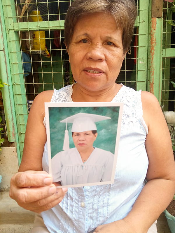 Forced by poverty to drop out of school as a child, she never gave up her desire to complete her education. The opportunity finally presented itself when Lucia was in her mid-60s. It came in the form of a program sponsored by the Filipino government that offered free tuition, with no age restrictions.