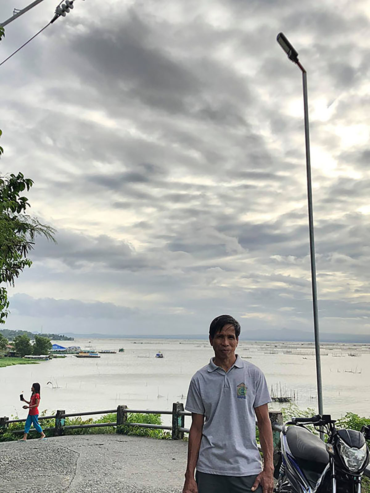 Photo 2: Arsenio stands in front of one of the solar-powered streetlights he and fellow Unbound parent group members helped secure for their community in the Philippines. The initiative was funded through an Agents of Change grant.