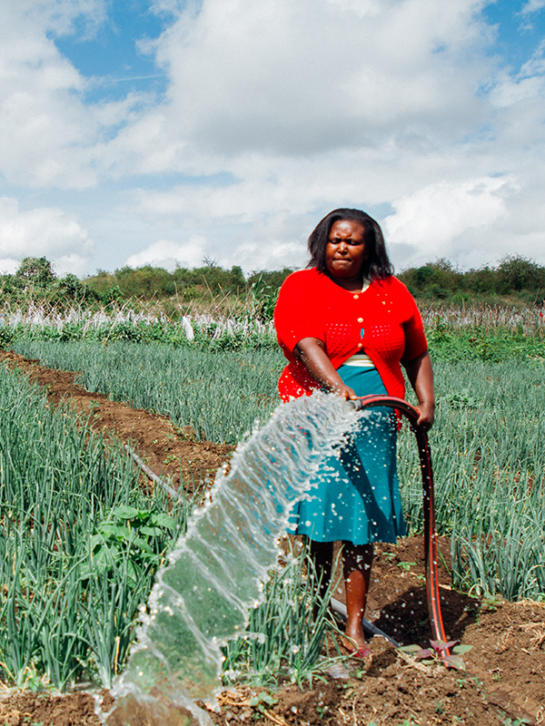 Photo 1: Mother of five Diana Rose in Kenya dreamed of having a farm. With the help of a loan from Unbound, she has been able to start a farming operation that now employs eight others in her community. Step-by-step, she hopes to one day be able to use her savings to buy her own land to grow tomatoes, onions, green peppers and kale.