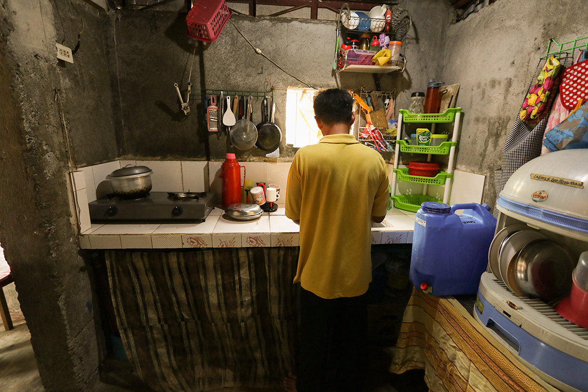 Photo 1: Through almost a decade of Susan’s absence, her husband Rogelio (pictured above in the family’s kitchen in the Philippines), raised their seven children, cooking, cleaning, working his own full-time job as a tricycle driver and ensuring the children kept up with their studies.