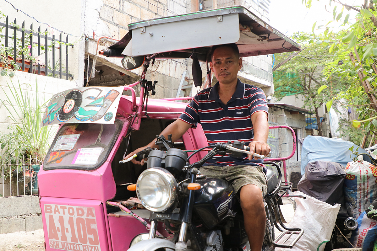 Photo 1: Rogelio’s chief source of income is transporting passengers around the sprawling Manila metro area on his “tricycle.” It was a boost for the family income when he was able to purchase the vehicle, but the work can be exhausting, starting early in the morning and often lasting until late at night.