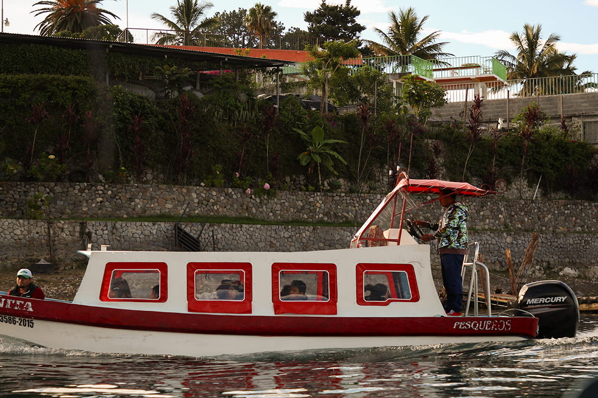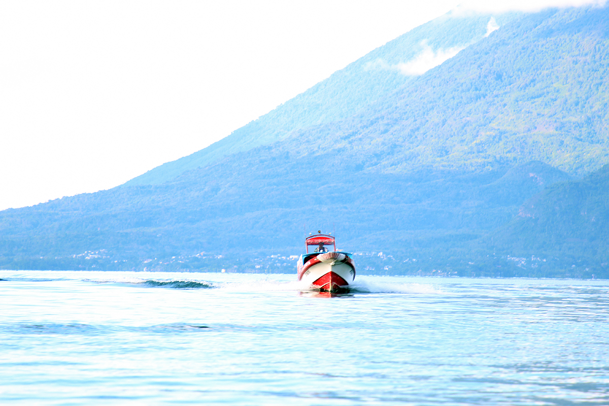 Ferryboats transport passengers across Lake Atitlan in southern Guatemala. One of the largest lakes in the country, people living in smaller towns and villages on the shores of Atitlan often commute to get to larger population areas across the lake where work is more readily available.