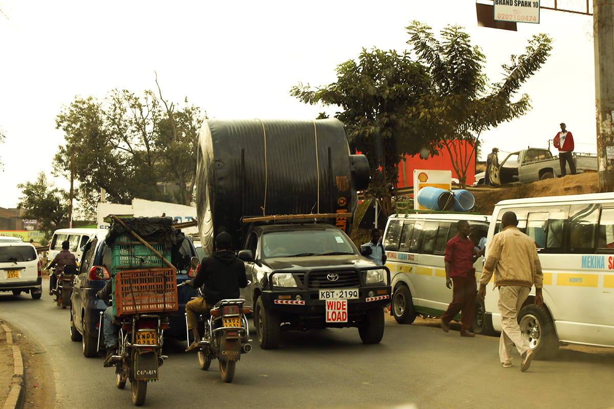 In Meru, Kenya, we get a glimpse of the ingenuity people use to transport goods around the city. It’s not unusual to see trucks, cars and even two-wheelers stacked high with materials. The motorcycle rider on the right seems to be doing fine with his cargo of containers.