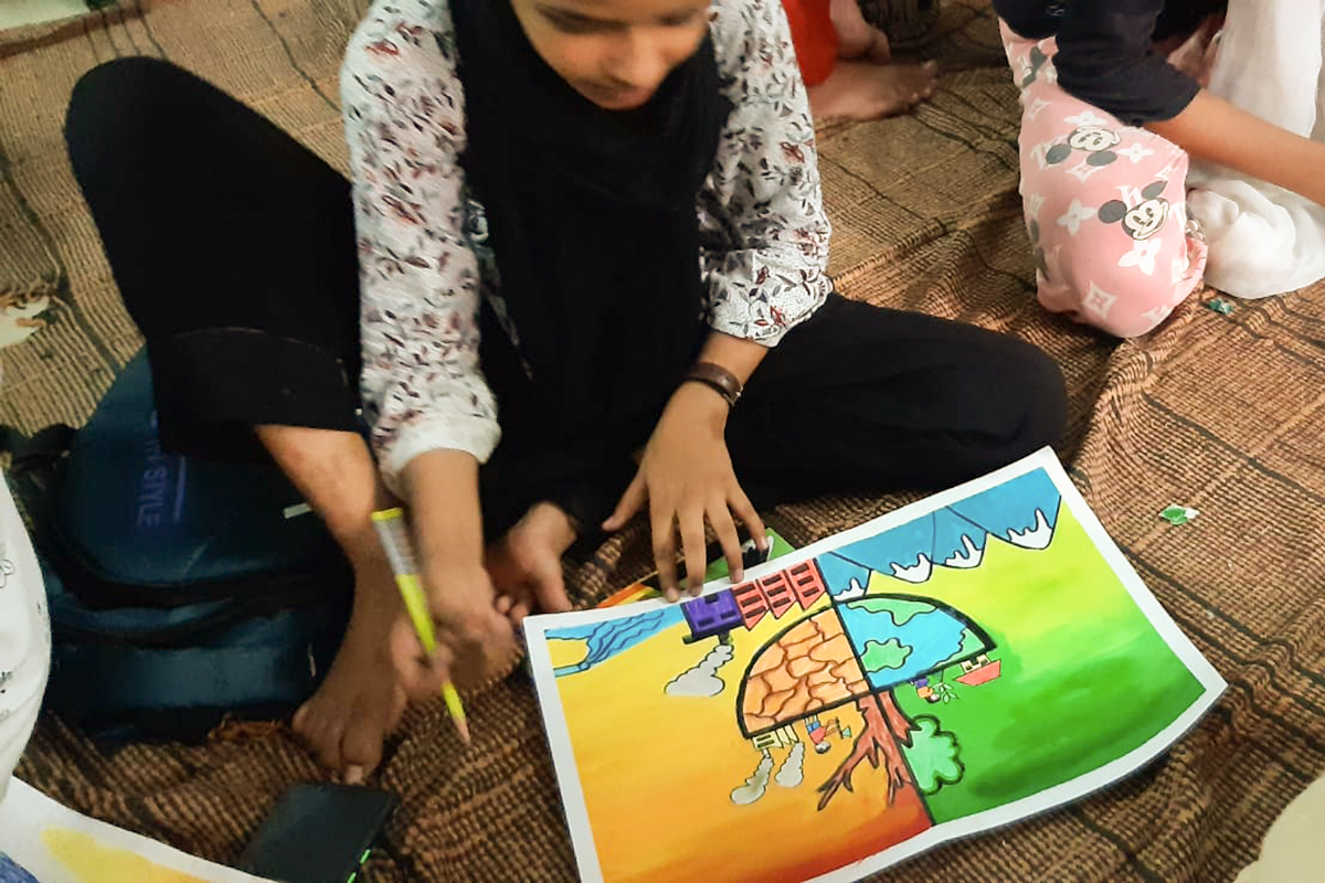 Major activities organized this past summer for camp included street theaters, computer classes, English-speaking classes, art and crafts workshops, career counseling, a drawing competition, educational field trips, and stitching and embroidery classes. Mothers of sponsored children also got the chance to participate in the camp, taking a class on food preservation.